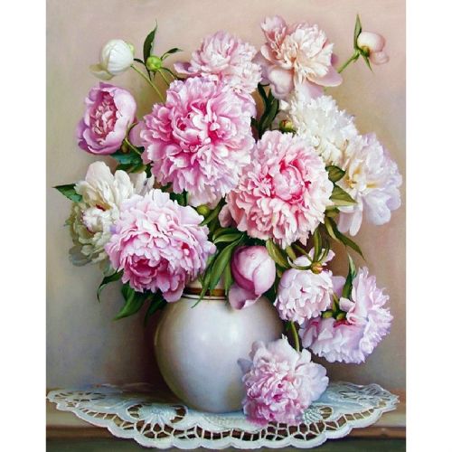 Картина по номерах “Білі піони у вазі” 40×50 см