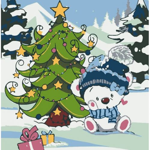 Картина по номерах зі світлодіодною підсвіткою “Під ялинкою” 25×25 см