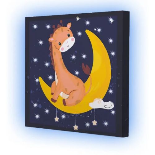 Картина по номерах з гірляндою “Жираф на місяці”, 25×25 см