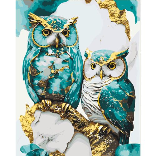 Картина по номерах з фарбами металік “Дві сови” 40х50 см