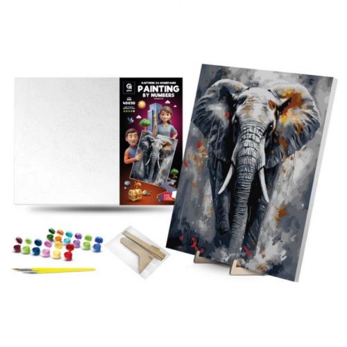Картина по номерах з фарбами металік 40х50 см “Величний слон” з деревʼяною підставкою