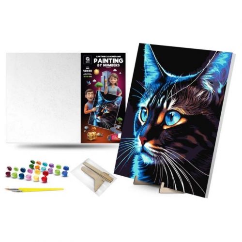 Дитяча картина за номерами. Для того, щоб намалювати картину, необхідно малювати за пронумерованими контурами, які відповідають кольору фарби. У наборі: полотно на підрамнику з галерейною натяжкою, художні нейлонові пензлі, палітра акрилових фарб у контейнерах, деревʼяні деталі підставки для картини. Усі необхідні фарби вже в комплекті та не вимагають змішування. Розмір: 4050 см. Рекомендовано для дітей старше 5 років.