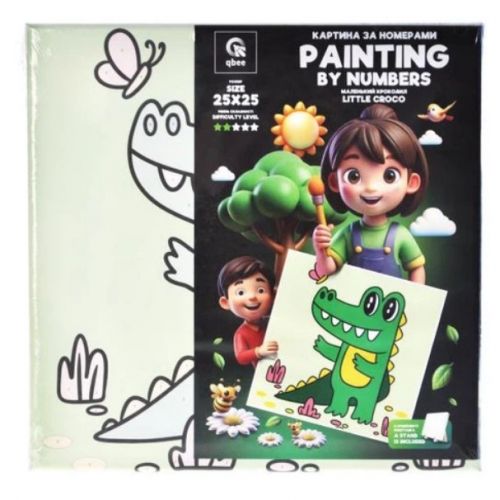 Картина по номерах “Маленький крокодил” (25х25 см) з деревʼяною підставкою
