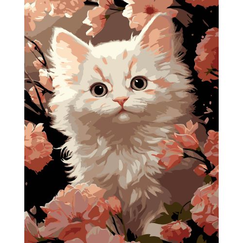 Картина по номерах на чорному фоні “Біле кошеня” 40х50 см