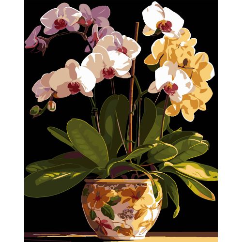 Картина по номерах на чорному фоні “Вазон орхідей” 40х50 см