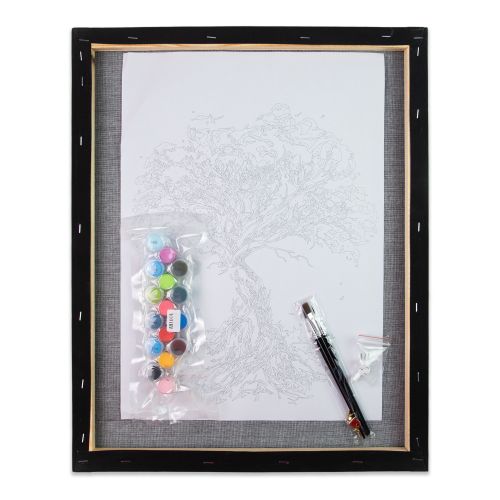 Комплектація: Полотно на підрамнику з галерейною натяжкою, паперова інструкція з контурним малюнком картини, нейлонові пензлі, палітра акрилових фарб у контейнерах