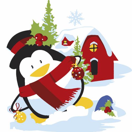 Картина по номерах “Пінгвін біля будинку” 20х20 см
