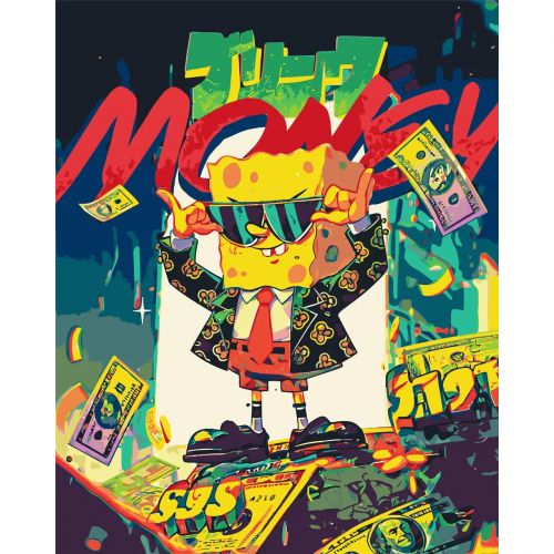 Картина по номерах “Спанчбоб з грошима” 40х50 см