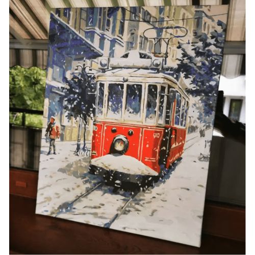 Картина по номерах “Старий червоний трамвай” 40х50 см