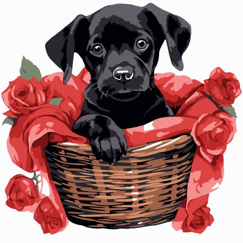 Картина по номерах “Чорне щеня з трояндами” 20х20 см