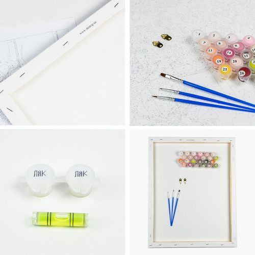 Комплектація: Полотно на підрамнику, набір фарб згідно з комплектації, пензлики.