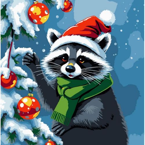 Картина по номерах “Єнот прикрашає ялинку” 30х30 см