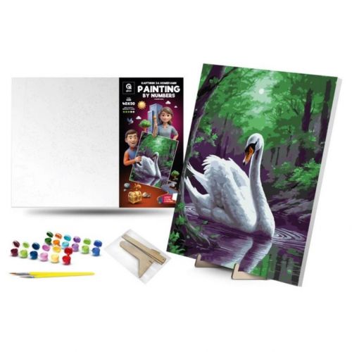 Картина по номерах 40х50 см “Чарівний лебідь” з деревʼяною підставкою