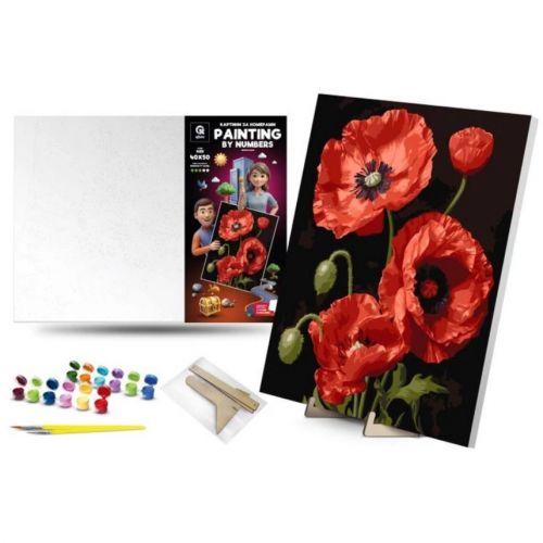 Картина по номерах 40х50 см “Чарівні маки” з деревʼяною підставкою