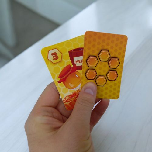 Перед вами дитяча карткова гра, де гравці виступають у ролі бджілок, які летять у вулик поласувати зібраним ними медом. На великих скупченнях сот більше меду. Але памʼятайте, що мед любите не тільки ви, а й веселий пасічних та злі шершні. Гра розрахована на 2-4 гравців віком від 6-ти років.