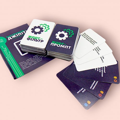 Розважально-інтелектуальна гра, де ви зможете весело провести час у компанії друзів та позмагатися зі штучним інтелектом у літературно-стилістичному двобої. У вас буде можливість створити більше ніж 3 тисячі унікальних запитів, і це не межа. Дайте волю своїй фантазії та безмежному почуттю гумору. Приготуйтеся до шаленої, веселої та іноді дивної сутички штучного інтелекту проти людського розуму. Гра розрахована на 2-6 гравців старше 12 років.