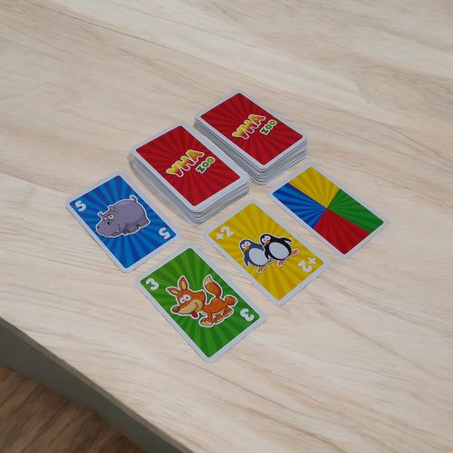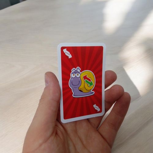 Карткова настільна гра УНО (UNO). Колода для гри в Уно містить карти з цифрами від 0 до 9 чотирьох кольорів, а також – спеціальні: «Пропусти хід», «Навпаки», «Візьми дві», «Замов колір» і «Замов колір і візьми чотири». Кожному роздається по 7 карт, після чого закладається одна для скидання. Мета гри – першим позбутися всіх карт.
