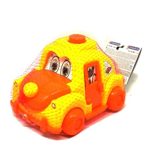 Пластикова каталка у вигляді машинки з ручкою на мотузочці. Відчиняються двері і бампер.