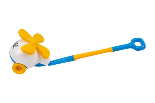 Яскрава пластикова каталка у вигляді гелікоптера. Оснащена міцною ручкою заввишки 65 см. Вертоліт їздить, гвинт обертається. Виконаний з якісних та міцних матеріалів, каталка міцна та довговічна. Обовʼязково порадує дитину, можна грати як вдома, так і на прогулянці. Розмір іграшки: 30х17х65 см.