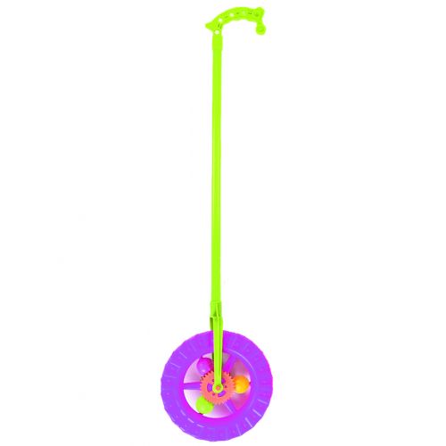 Каталка «Колесо» на паличці — весела іграшка для активних прогулянок. Під час руху колесо обертається і створює звуки тріскачки та брязкальця, що робить гру цікавішою для малюка. Іграшка допомагає розвивати координацію рухів та стимулює дитину більше рухатися. Підходить для прогулянок на подвір’ї або у парку.