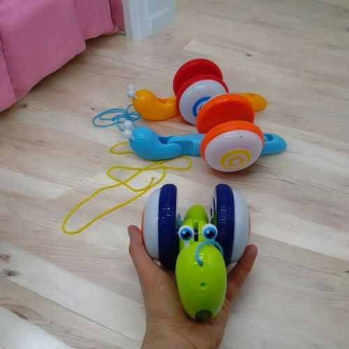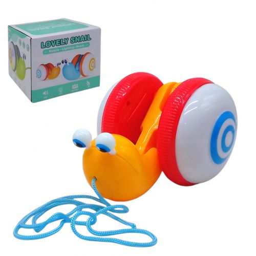 Музична каталка “Равлик”. Каталка на мотузочку розважить малюка, а також подарує море позитивних емоцій. Є звукові ефекти – грає весела мелодія. А також світиться панцир. Тіло равлика рухливе, має 3 точки згину. Працює на батарейках ААА (не входять до комплекту). Розмір равлика – 18х9х11 см. Виконана з якісного та міцного пластику, для дітей старше 1 року.
