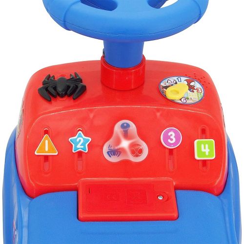 Яскравий чудомобіль, виконаний в стилі популярного мультсеріалу про Людину-Павука студії MARVEL «Спайді та його дивовижні друзі», розважить дитину миготливими вогниками, приємними мелодіями, кумедними звуками, а також реалістичними звуками двигуна та сигналу.