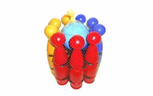 Кеглі “Павутинка-9”. Кеглі для боулінгу (9 штук), пластикові. Розмір однієї – 6 х 6 х 24 см. Діаметр кулі – 10 см.