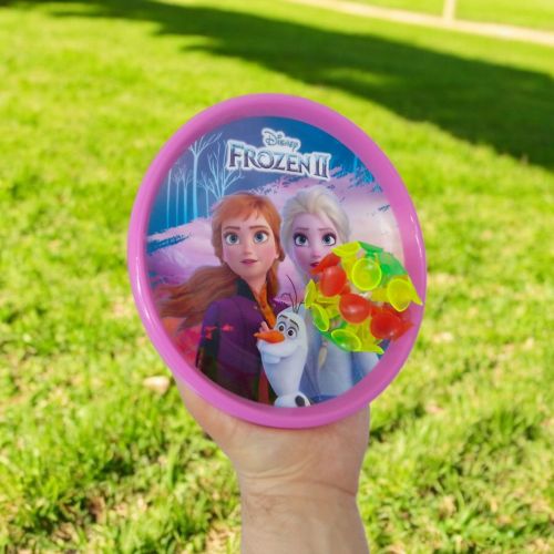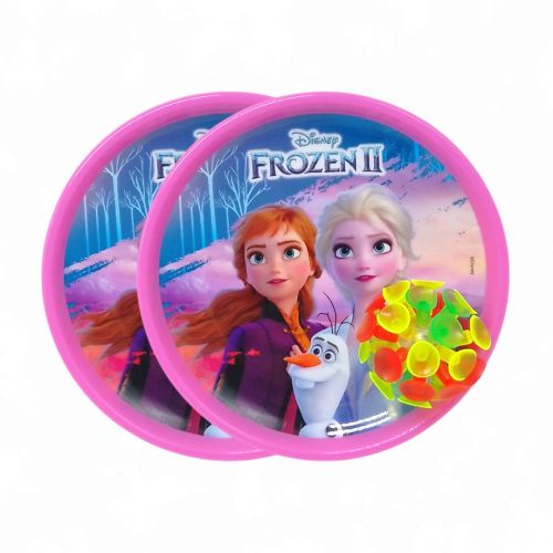 Гра Catchball. Правила дуже прості – кидайте один одному мʼячик та ловіть у свою “тарілку”. Розвиває дрібну моторику, координацію. У набір входять дві кольорові пастки для мʼяча в тематиці мультфільму та сам мʼячик. Мячик має світлові ефекти, на присосках. Діаметр пастки – 18 см.