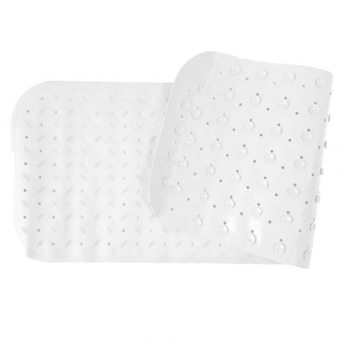 Килимок надійно кріпиться за допомогою присосок і допомагає вберегти дитину від падінь на слизькій поверхні ванни. Килимок приємний на дотик і еластичний. Рельєфна поверхня килимка забезпечить масаж стоп, що дозволить сформувати фізіологічно правильний звід на стопах. Розмір килимка: 35х95 см.