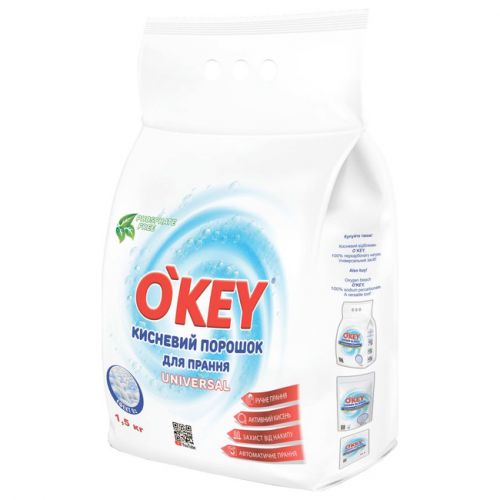 Кисневий порошок має підвищений вміст кисневого відбілювача, який чудово відпирає плями різного походження. При розчиненні у теплій воді перкарбонат натрію виділяє активний кисень, що виводить навіть застарілі забруднення, при цьому не пошкоджуючи тканини. Порошок також містить ТАЕД для активації кисневого відбілювача при низькій температурі (30-40 градусів), а ще додаткові компоненти для покращення дії прального порошку та можливості використання у пральних машинах.
