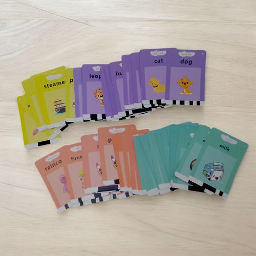 Методика Монтессорі – це філософія виховання цілісної особистості, яка впевнена в собі та знає, як отримувати знання. З цим набором дитина зможе познайомитися з основними словами англійської мови з різних категорій (тварин, транспорт, їжа, фрукти, форми тощо). Необхідно вставити картки з малюнками в спеціальний планшет, і він озвучить слова (для деяких категорій, доповнюючи відповідний звуковий ефект). 112 двосторонніх карток.