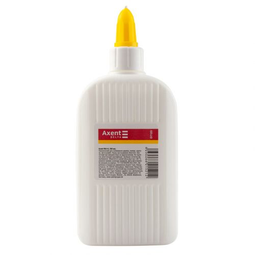 Клей ПВА в даний час став синонімом універсального клею, його використовують в офісі, школі, вдома і в будівництві. Причини популярності клею ПВА – в простоті застосування, доступності та відсутності токсичних виділень. Клей ПВА Delta by Axent використовується для склеювання паперу, картону, фотографій, тканини і дерева. Ковпачок-дозатор регулює подачу клею та запобігає його висиханню, дозволяє наносити клей краплями або тонкою лінією. При падінні флакона, в горизонтальному положенні клей не виливається. Не токсичний, змивається водою.