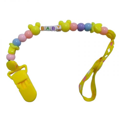 Кліпса зі шнурочком для пустушки це корисний аксесуар. Його зручність полягає в тому, що соска вашого малюка завжди буде поруч, адже кліпса кріпиться до його одягу і не приносить дискомфорту. Прикрашена милими намистинами-фігурками, виконана в дуже милому дизайні, що привертає увагу. Довжина – 27 см.