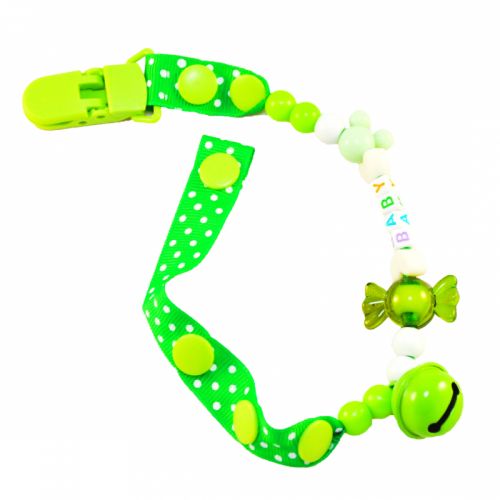 Кліпса з шнурочком для пустушки це корисний аксесуар. Його зручність полягає в тому, що соска вашого малюка завжди поруч, адже кліпса кріпиться до його одязі і не доставляє дискомфорту. До кліпсі прикріплений дзвіночок.