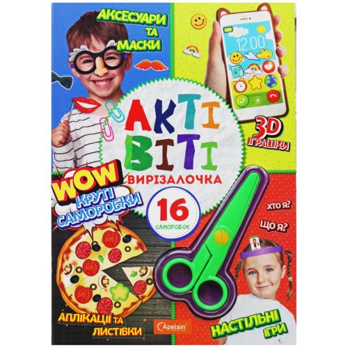 Незвичайна і захоплююча книга саморобок “Актівіті-вирізалочка”. Тут зібрані найцікавіші колекції готових ідей, щоб власноруч зробити саморобки, 3д іграшки, маски, аксесуари, ігри, листівки та інші цікавинки. Створюй круті саморобки весело та просто: вирізай вже готові елементи й послідовно дотримуйся інструкції. Нічого не треба придумувати, або шукати додаткові деталі чи матеріали, просто вирізай – згинай – приклеюй – грайся. Тобі в допомогу зразок-підказка готового виробу, при потребі паперові заготовки можна наклеїти на картон. Ножиці вже є в наборі.