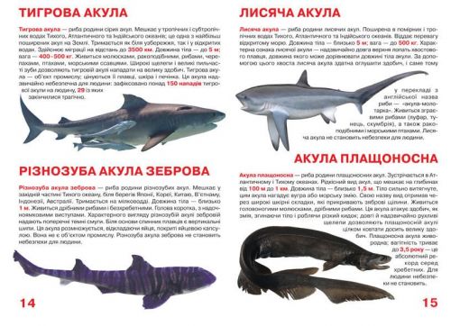 Книга “Велика книга. Акули”. У ній описані різні види акул їх характеристики і особливості. З яскравими ілюстраціями. 17 сторінок, м’яка обкладинка, на українському.