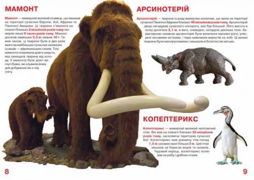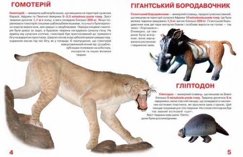 Книга “Велика книга. Доісторичні тварини”. У цій книзі популярно розповідається про зовнішній вигляд і особливості поведінки древніх представників тваринного світу. З яскравими ілюстраціями. 17 сторінок, м’яка обкладинка, на українському.