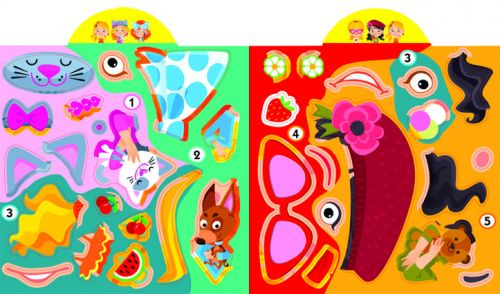Яскрава дитяча книжечка з великими і барвистими наклейками, за допомогою яких можна доповнювати ілюстрації. 10 сторінок. Мова: український.