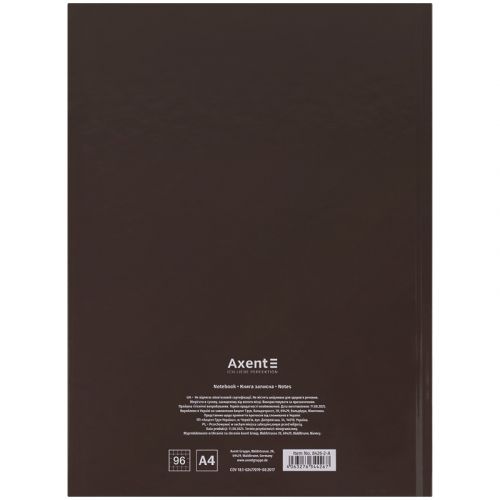 Записна канцелярська книга Axent ідеально підходить для щоденних записів, ведення обліку, замальовок схем і графіків, а також для фіксації великого обсягу інформації. Тверда обкладинка з щільного картону забезпечує збереження акуратного зовнішнього вигляду протягом тривалого користування. Газетний папір у клітинку (5×5 мм). Щільність паперу становить 45 г/м². Розмір книги 203*273 мм., 96 аркушів. Глянцева ламінація на обкладинці додає елегантності.