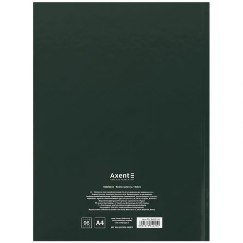 Записна канцелярська книга Axent ідеально підходить для щоденних записів, ведення обліку, замальовок схем і графіків, а також для фіксації великого обсягу інформації. Тверда обкладинка з щільного картону забезпечує збереження акуратного зовнішнього вигляду протягом тривалого користування. Газетний папір у клітинку (5×5 мм). Щільність паперу становить 45 г/м². Розмір книги 203*273 мм., 96 аркушів. Глянцева ламінація на обкладинці додає елегантності.