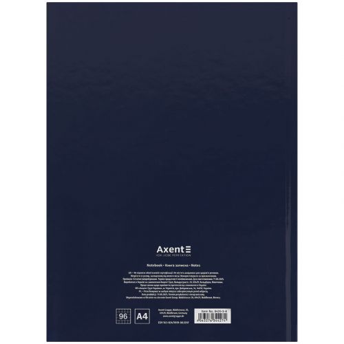 Записна канцелярська книга Axent ідеально підходить для щоденних записів, ведення обліку, замальовок схем і графіків, а також для фіксації великого обсягу інформації. Тверда обкладинка з щільного картону забезпечує збереження акуратного зовнішнього вигляду протягом тривалого користування. Газетний папір у клітинку (5×5 мм). Щільність паперу становить 45 г/м². Розмір книги 203*273 мм., 96 аркушів. Глянцева ламінація на обкладинці додає елегантності.