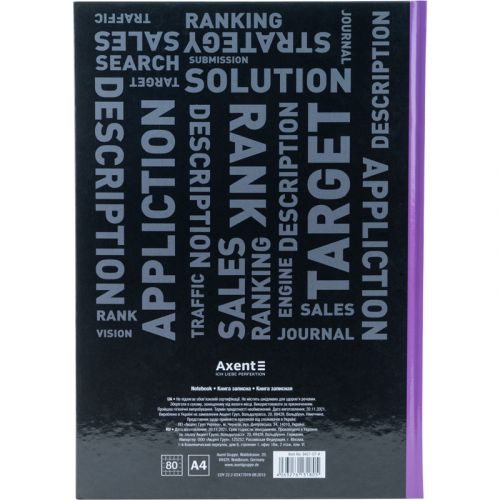 Записна канцелярська книга Axent призначена для щоденних записів, ведення обліку, замальовки схем, графіків, фіксації великого обсягу інформації. Тверде переплетення і обкладинка гарантують збереження акуратного зовнішнього вигляду під час користування. Білий папір в клітинку забезпечує комфортне письмо. Розмір клітинки 5×5 мм. Кількість аркушів – 80. Щільність паперу 55г/м2. Формат – стандартний, А4. Глянцева ламінація на обкладинці.