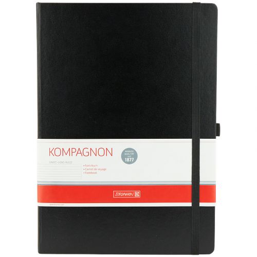 Записна книга Компаньйон в чорній класичній обкладинці . Формат А4. 192 сторінки в лінійку. Кремовий папір, петля для ручки, надійна фіксуюча резинка, карман.