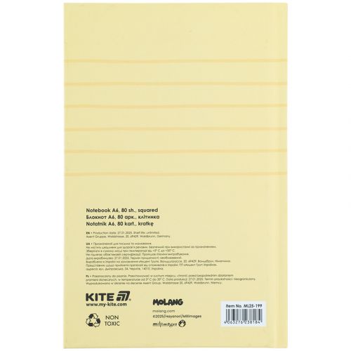 Серія записних книжок створена, щоб наповнювати радістю, заряджати позитивом і надихати на яскраві ідеї. Записна книжка може стати бажаною покупкою, доречним подарунком. Якісний папір щільністю 70г/м2 білого кольору забезпечує комфортне письмо, добре вбирає чорнило. Завдяки міцному переплетенню та твердій обкладинці записна книжка буде зручною у використанні. Папір у клітинку, зручно робити будь-які записи, малювати, креслити. Формат – А6 – (170х110мм). Кількість аркушів – 80. Тип кріплення – шитво на нитку+клей. Ефект на обкладинці: .
