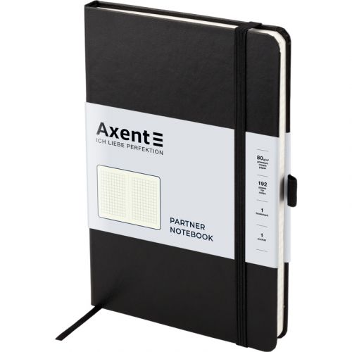 Книга записна Axent із серії Partner призначена для тих, хто цінує класичний діловий дизайн і максимальну функціональність. Може використовуватися для записів, для планування, як недатований щоденник, для будь-яких ділових і творчих завдань. Записна книжка Partner має тверде переплетення з вінілу, завдяки чому навіть з часом зберігає акуратний і презентабельний вигляд. Якісний папір щільністю 80г/м2 благородного кремового відтінку забезпечує комфортне письмо, добре вбирає чорнило. Папір у клітинку, зручно робити будь-які записи, малювати, креслити. Розміри клітинки складають 5х5 мм. Містить 96 аркушів, формат А5- дозволяє фіксувати багато інформації, і при цьому зручно носити записну книжку з собою. Закладка дозволяє швидко знайти і відкрити потрібні сторінки. Кишеня на форзаці буде надійно зберігати нотатки, чеки, картки та інші важливі дрібниці. Петля для ручки не дає ручці загубитися і випасти, немає необхідності носити ручку між сторінок і псувати зовнішній вигляд записної книжки.