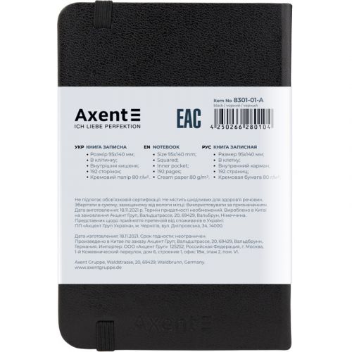Книга записна Axent із серії Partner призначена для тих, хто цінує класичний діловий дизайн і максимальну функціональність. Кишеньковий А6 формат дозволяє носити записну книжку з собою, щоб у будь-який момент записати щось важливе і повернутися до записів, коли необхідно. Містить 96 аркушів – дозволяє фіксувати багато інформації. Може використовуватися для записів, для планування, для будь-яких ділових і творчих завдань. Записна книжка Partner має тверде переплетення з вінілу, завдяки чому навіть з часом зберігає акуратний і презентабельний вигляд. Якісний папір щільністю 80г/м2 благородного кремового відтінку забезпечує комфортне письмо, добре вбирає чорнило. Папір у клітинку, зручно робити будь-які записи, малювати, креслити. Розміри клітинки складають 5х5 мм. Закладка дозволяє швидко знайти і відкрити потрібні сторінки. Кишеня на форзаці буде надійно зберігати нотатки, чеки, картки та інші важливі дрібниці. Еластична тасьма дозволяє уникнути випадкового розкриття і втрати важливих паперів.