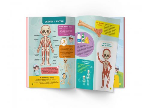 З книгою серії “Школа сучасного чомусика” дитина зможе легко вивчити людську анатомію, виконуючи завдання та наклеюючи наліпки. Зможе вивчити безліч нових слів і потренує уяву. Яскраві ілюстрації та безліч цікавих фактів обовʼязково привернуть увагу дитини.
