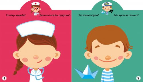 Книга “Играйка-Развівайка. Професії. 53 великі наклейки”. Відгадай хто зображений на малюнку. Допоможи представникам різних професій повернути те, що вони втратили. Використовуй для цього наклейки. А якщо заплутаєшся, подивися на зразок вгорі сторінки!