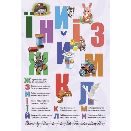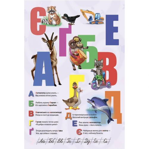 Цікава повчальна книжка-панорамка з гарними картинками. За допомогою яскравих, обʼємних ілюстрацій та веселих віршиків дитина зможе легко вивчити літери алфавіту. Українською мовою. Тверда обкладинка.