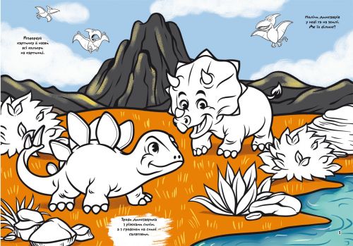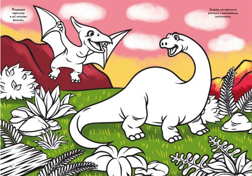 Книга “Перша кольорова розфарбування із завданнями. Динозаврики”